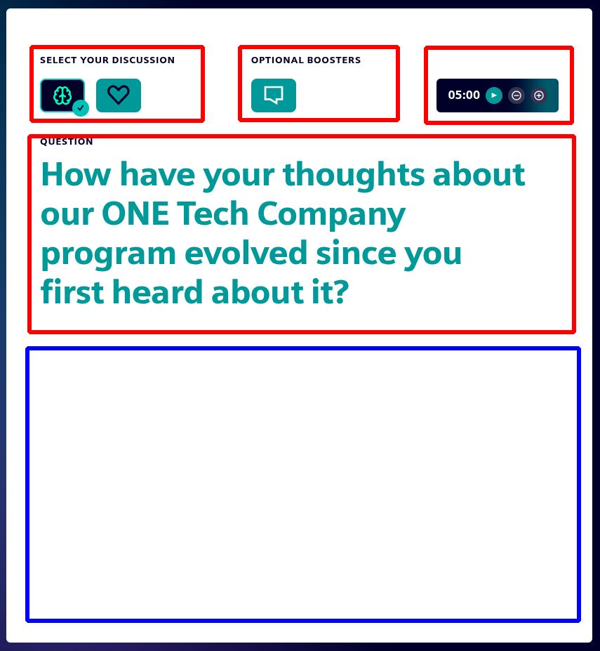 If we choose to select a booster, the question text will shrink to a smaller size and that booster panel will open in the area bordered blue.